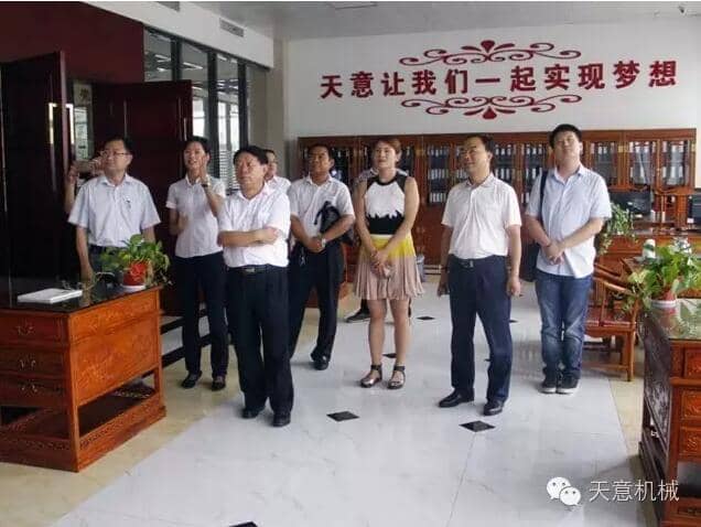 會議結束后,天意機械董事長劉洪彬陪同各領導及各委員代表參觀了天意機械智能化辦公大樓、6S生產車間、裝配式別墅和文化長廊,在參觀中,與會領導代表對于天意機械的迅速發展及優秀的企業文化表示高度贊賞!