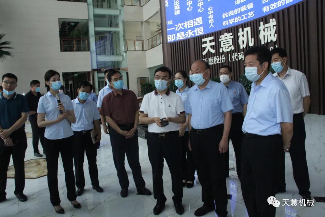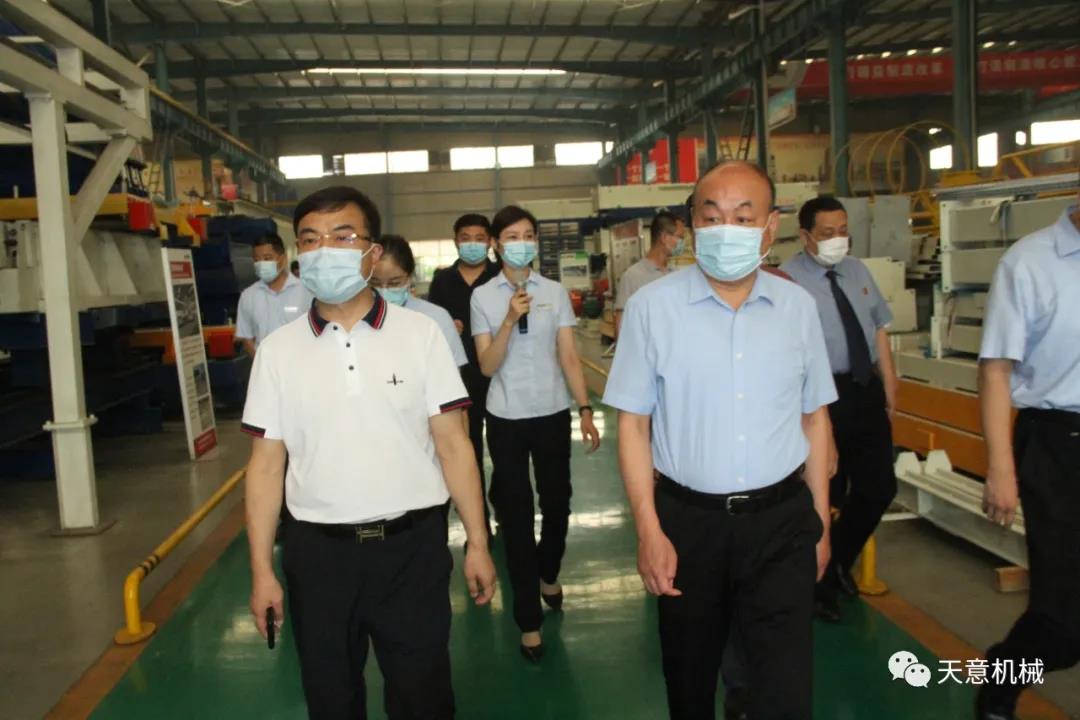 7月14日上午,省檢察院專職委員會委員、一級高級檢察官劉繼祥,法律政策研究室主任、一級調研員李政等領導一行蒞臨天意機械走訪調研,市檢察院副檢察長孔凡學,市檢察院法律政策研究室主任陳玲,區委常委、政法委書記馬剛,區檢察院黨組書記、檢察長安如喜,區檢察院黨組副書記、副檢察長馬洪偉,省政協委員、天意機械董事長劉洪彬陪同調研并座談。